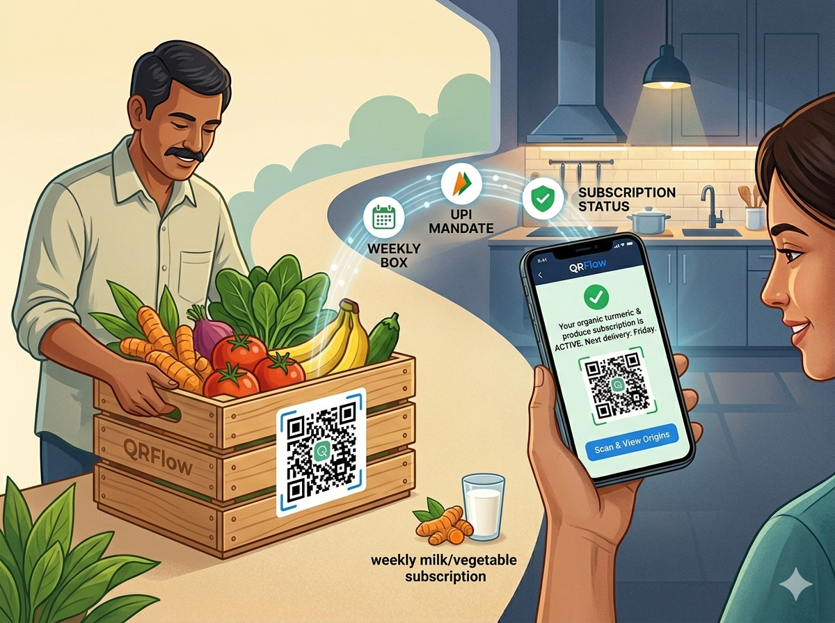 - The Implementation: Place a QR code on "Thank You" cards that leads directly to a recurring payment mandate or a Google Form for weekly milk/vegetable subscriptions.